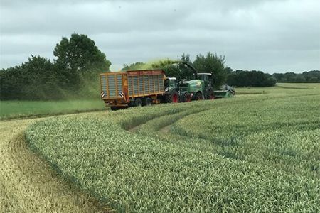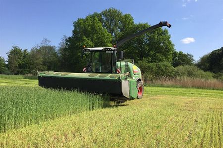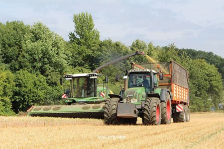 Mit unserem Fendt Katana 65 bieten wir auch die Möglichkeit der Ganzpflanzensilage. Wir nutzen hier ein 6,20 m Zürn-Direktschneidwerk, eine 40-Messer-Trommel sowie den CornCracker zur Ernte. Die Abfuhr erfolgt mittels unserer Abfuhrgespanne.